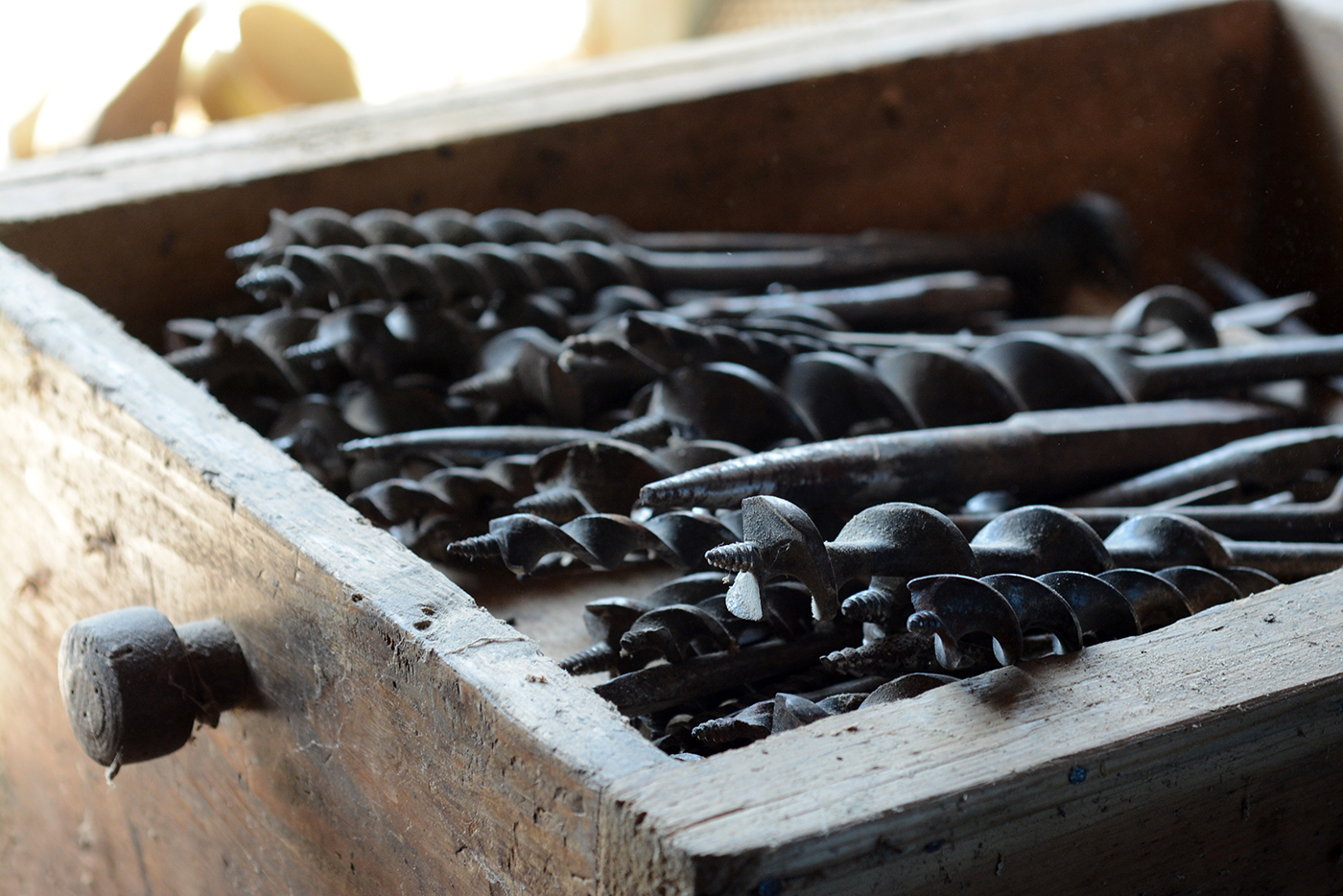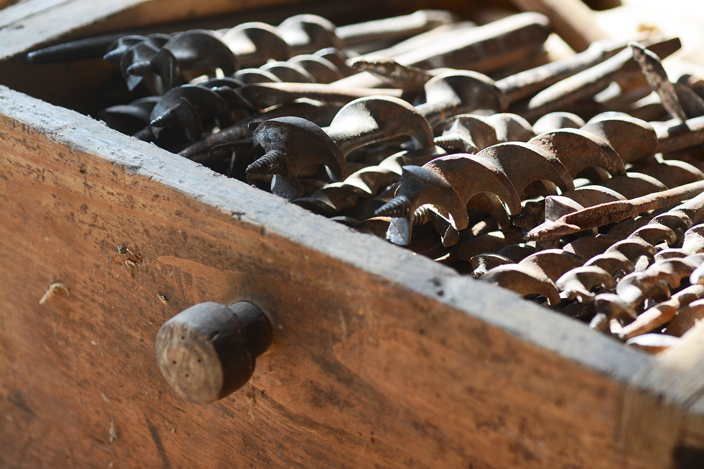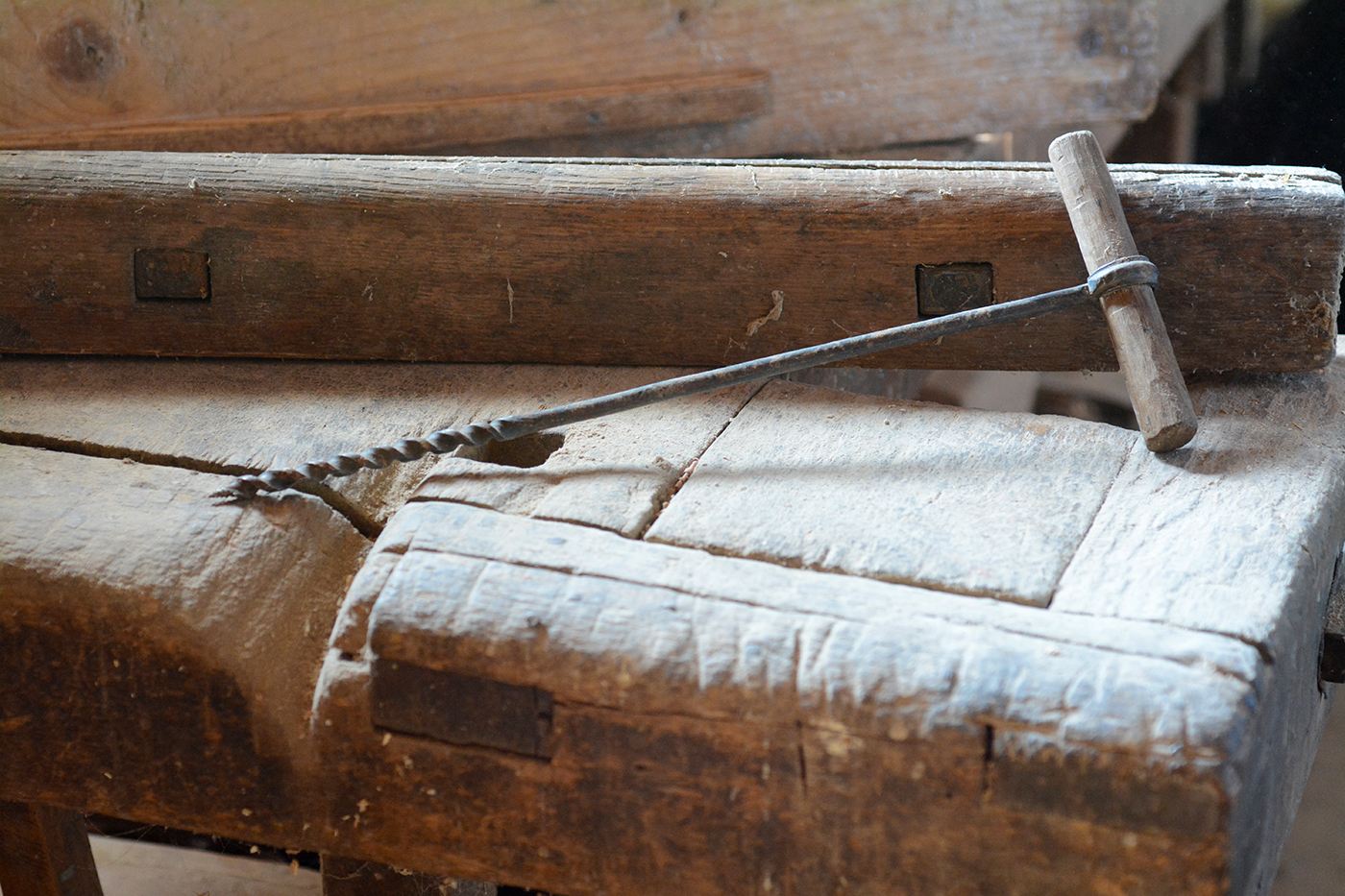 A nagy méretű kanalas fúrókkal a kerékagyakat fúrták ki, melyekbe a keréktengely vége illeszkedett.
