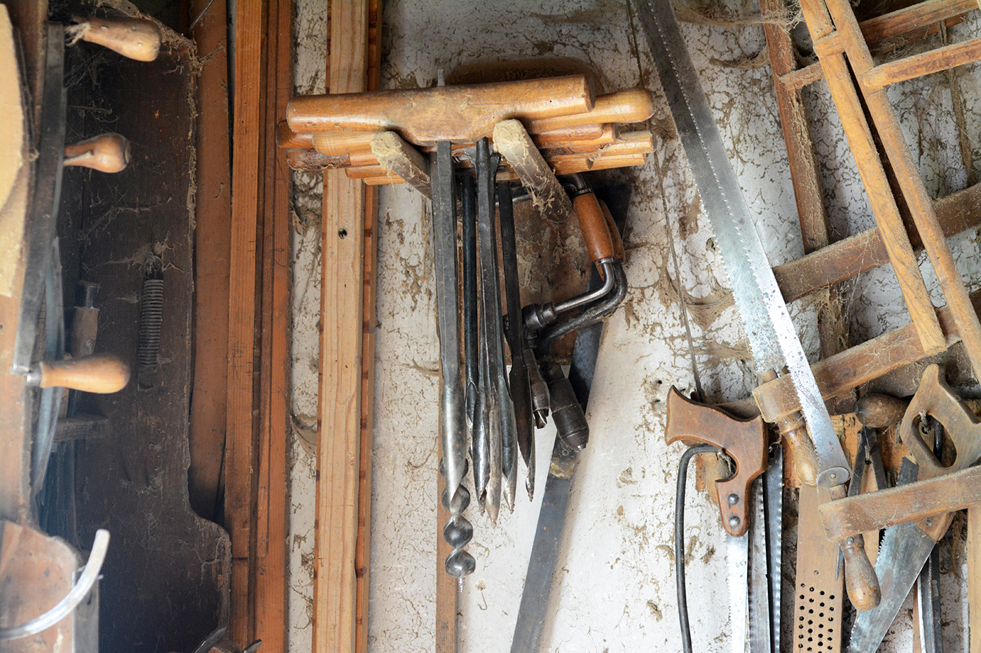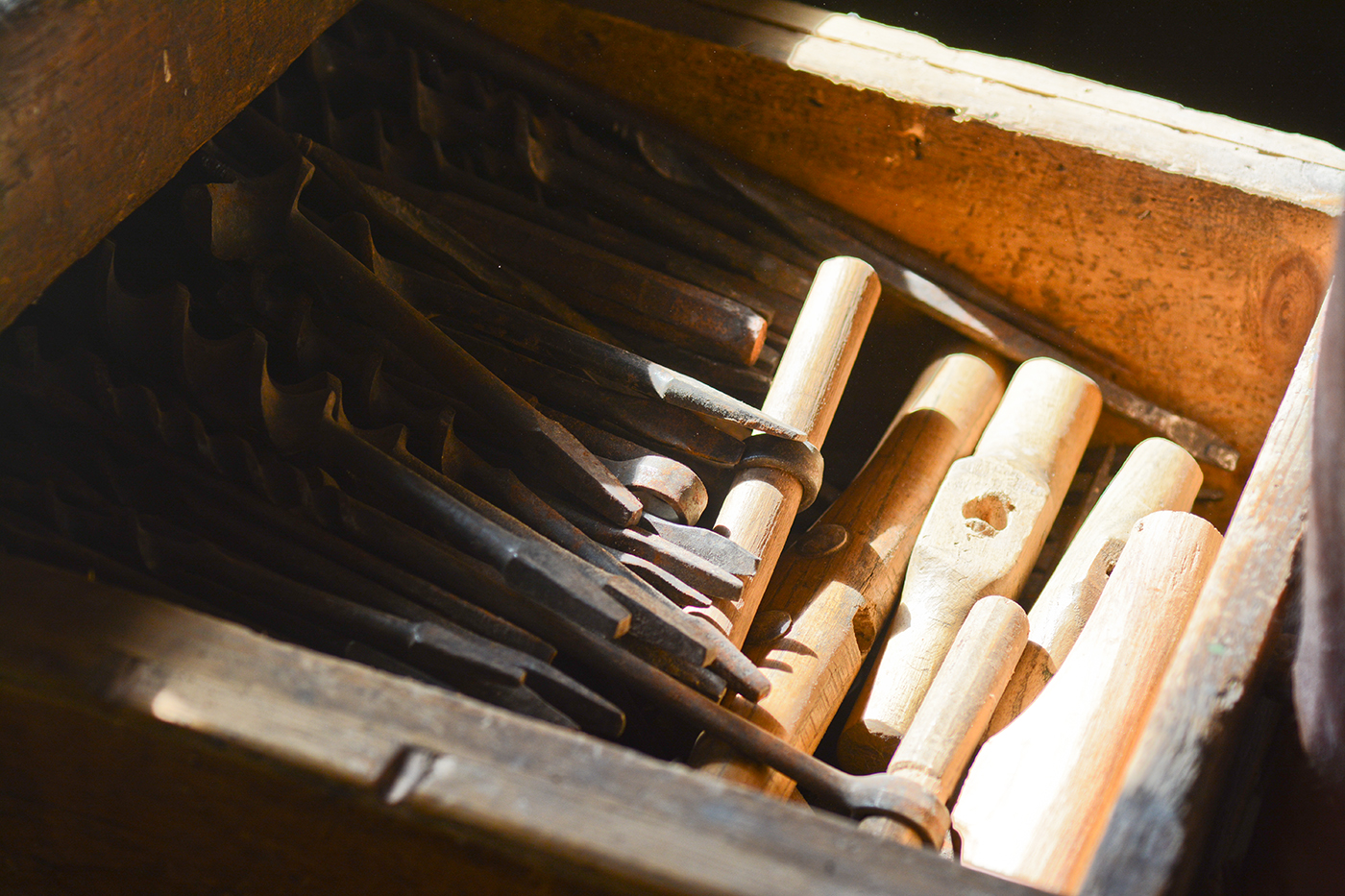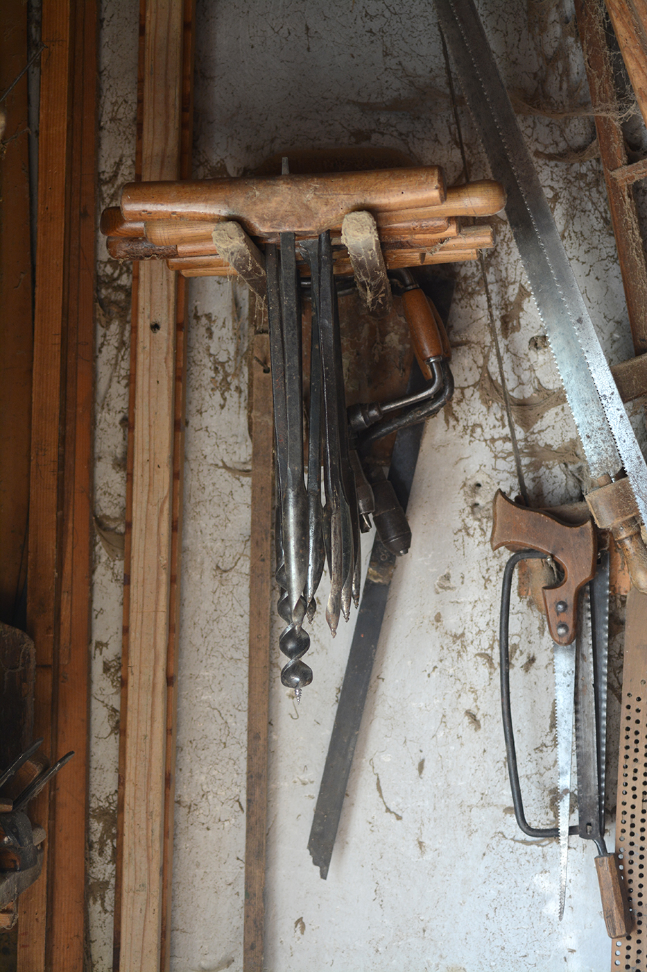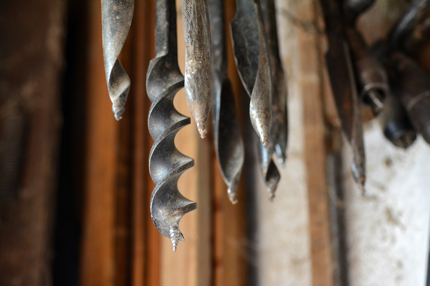 A nagy méretű kanalas fúrókkal a kerékagyakat fúrták ki, melyekbe a keréktengely vége illeszkedett.