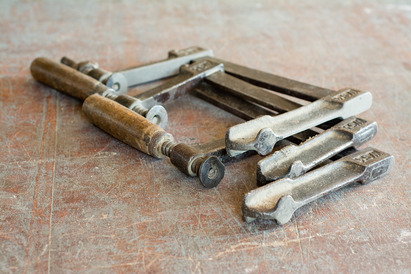 A satu és a gyalupad stabil szorítója mellett egy jól felszerelt kerekesműhelyhez a kézi szorítók is hozzátartoznak. Segítségükkel a darabok előzetes rögzítését lehet elvégezni, de a munkadarabok összeragasztásakor is ezeket használják.