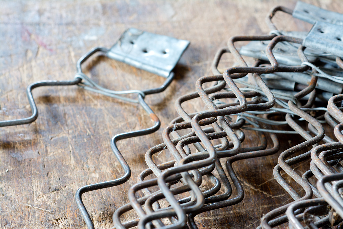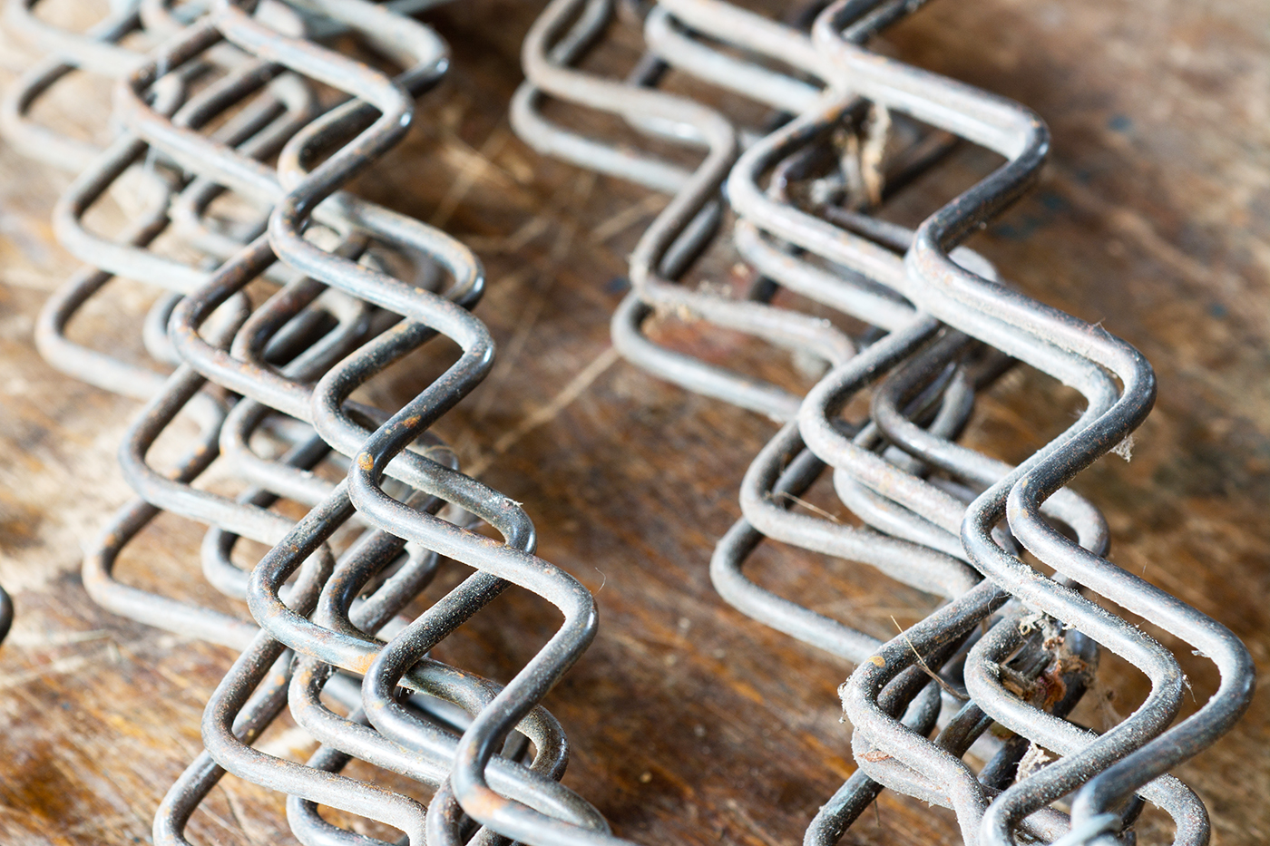 A matracok, ülőgarnitúrák kényelmes rugózását a beépített rugótípusokkal oldják meg a kárpitosok. Fehér András kárpitosmester a spirál alakú kárpitosrugók és hullámheveder mellett összefont rugóstesteket is használ munkája során.